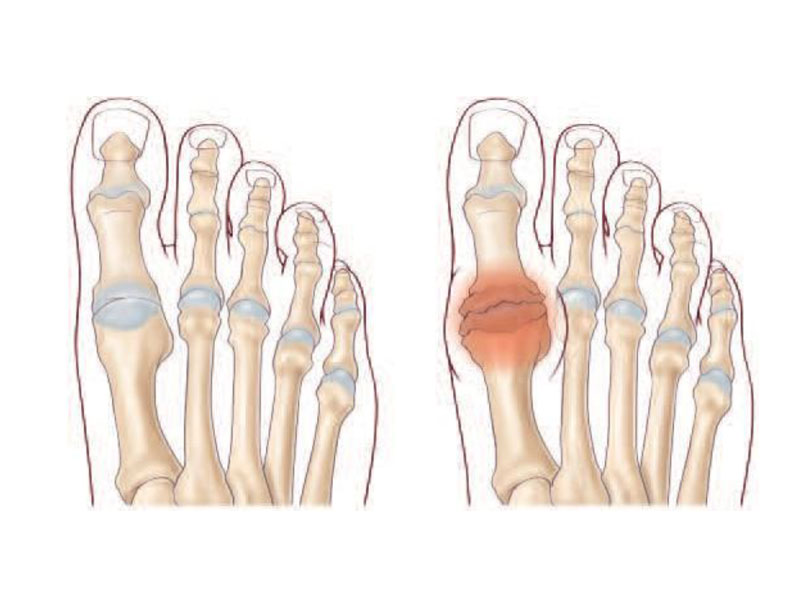 Un hallux rigidus se traduit par une raideur du gros orteil et des douleurs croissantes au niveau de l’articulation, à l’appui et à la marche.